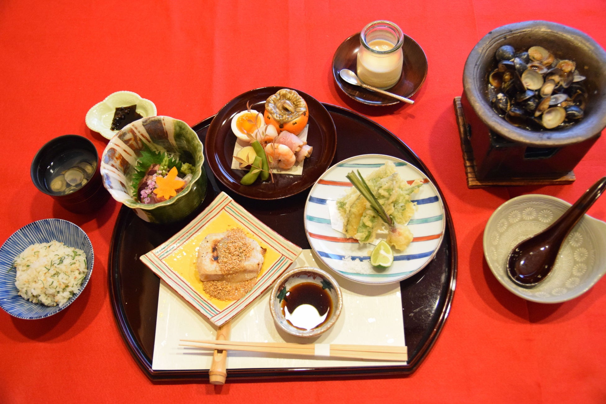 地元食材にこだわり、四季折々の料理が楽しめる日本料理のお店。山陰地方独特の甘辛い味付けをした“宍道湖産しじみの殻蒸し”に加え、前菜、季節のお造り、天ぷら、さらに名物の焼きごま豆腐等を含めた、料理長特性のオリジナルメニュー「宍道湖しじみ殻蒸し御膳」をご賞味ください。