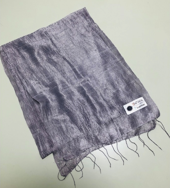 このスカーフは昨年出会った鹿児島県の中小企業「尾塚水産」が海の生態系を守る(※)ために制作された雲丹(ウニ)染めスカーフを採用致しました。今後、同商品の輸出もサポート予定です。