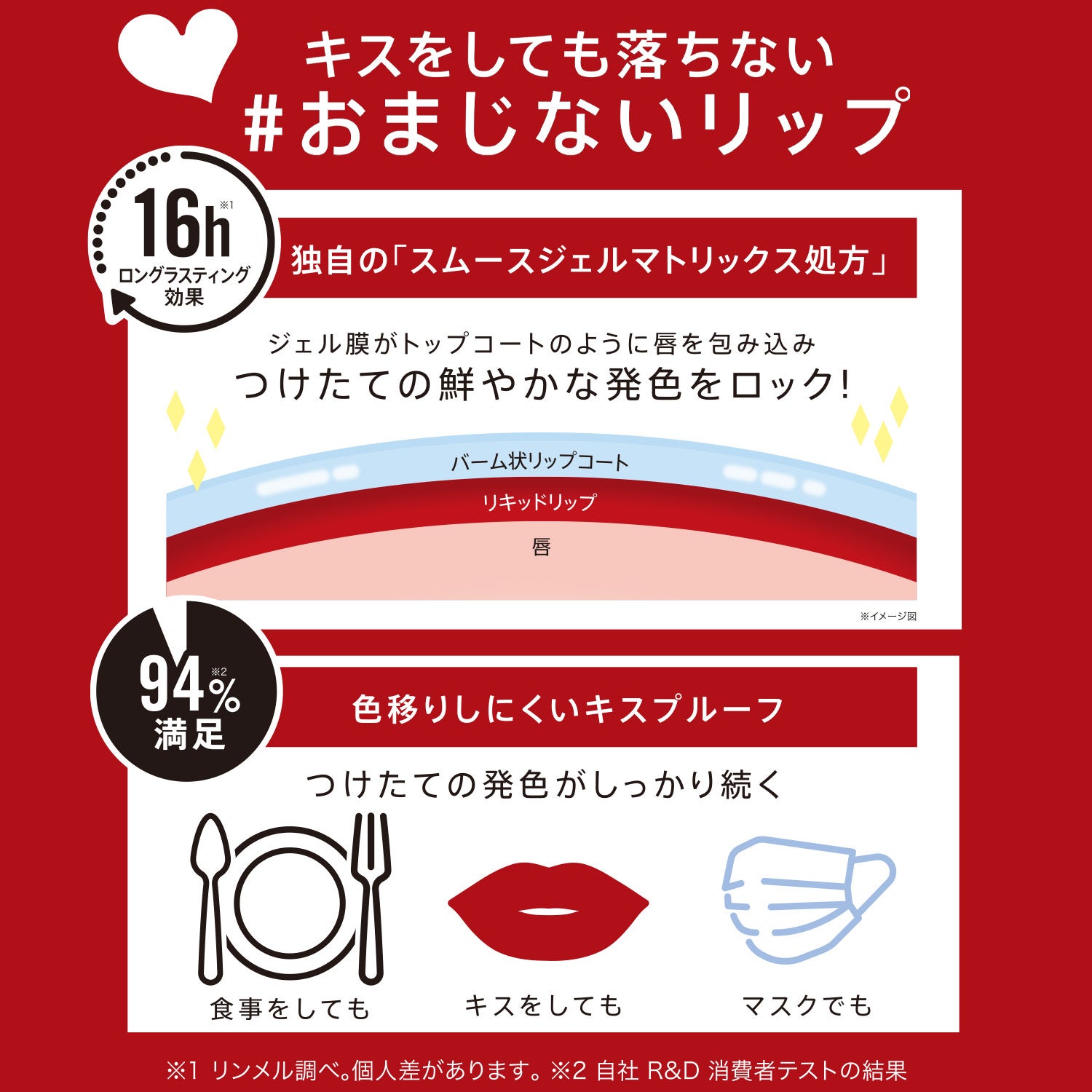 ● 色落ちしにくく、長時間*1、キレイなリップラインが続く!
