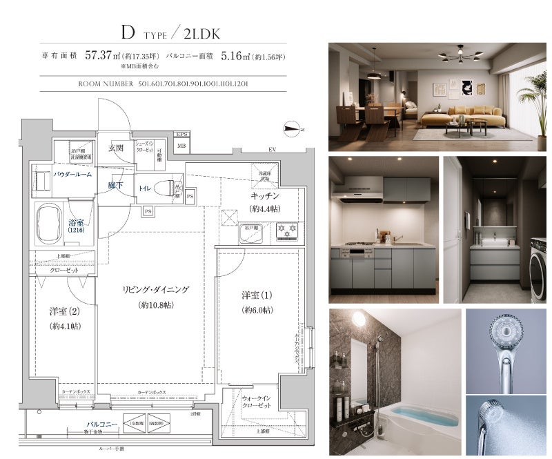 間取りは1Rと2LDK(26.92㎡~57.37㎡)で構成しております。内装はオフホワイトのフローリングと壁紙が家具の色合いを引き立たせ、住まい手の個性と優雅に調和する住空間を演出します。