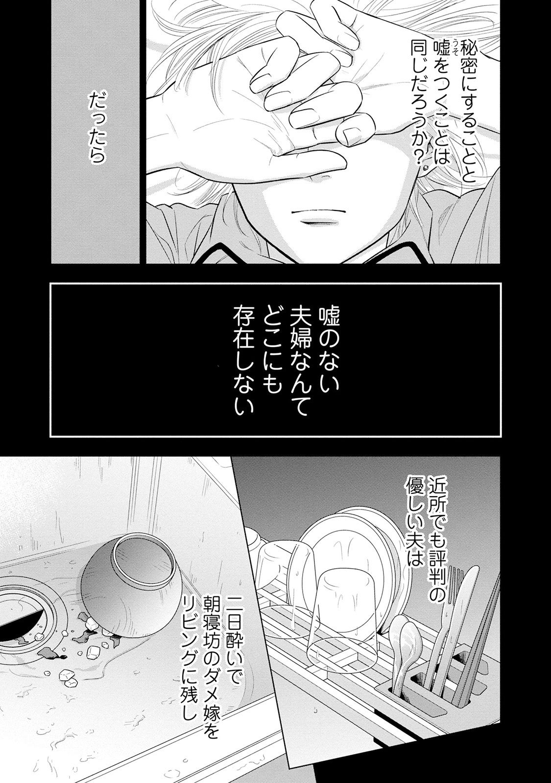 「本当に仕事が忙しいの?それとも何か他に理由があるの…!?」 夫を問いただして夫婦関係が壊れるかもしれないリスクをとるか、自分の心にしまってこれからの日常を守るか…。迷いの結婚生活が始まる――。