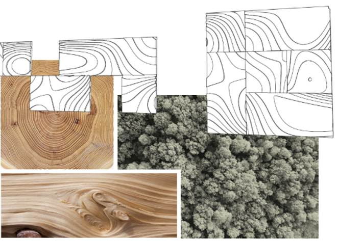人工林の持つ、樹木の有機性と材としての直線性。材は効率的に切り出すことができるユニットに分割され、それらがユーザーのもとで有機的に組み替えられることで、様々なシーンに適応し、オリジナルのアートとして完成します。