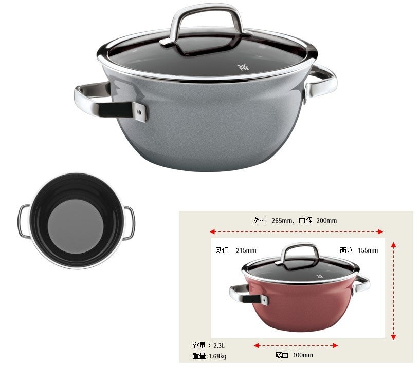「フュージョンテック ミネラル」は、約30種類の天然鉱石を使用したWMF独自のミネラル素材から生まれたシリーズで、遠赤外線効果が高く、素材の色や香り、風味をそのままに、料理を美味しく仕上げることができます。光沢のあるガラスのように滑らかな表面は、こびりつきにくく、使った後の汚れもスルッと落ちてお手入れも簡単です。非常に頑丈なので、食器洗浄機もお使いいただけるなど、使いさすさも兼ね備えています。