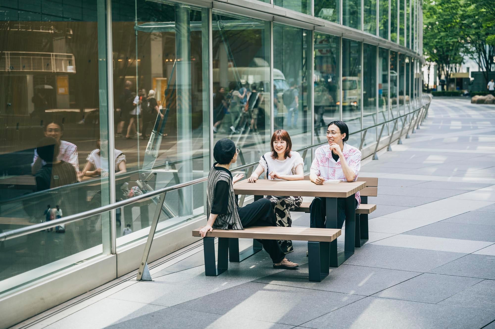 「ファンダライン」は、自然と人々を迎えいれてくれる普遍的でやさしいデザインを心掛け、大きな広場から建物の軒先まで、さまざまな「まちの1階」に人が自由にいられる場所を提供することを目標にした新しい屋外家具ブランドシリーズです。