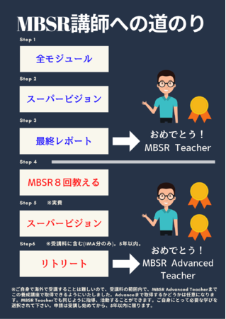 - MBSR講師資格取得後、アッドオンプログラムにより、短期間で、更なるステップアップとして、MBCTやMBCLの資格を取得するプログラムも将来的に予定しています。