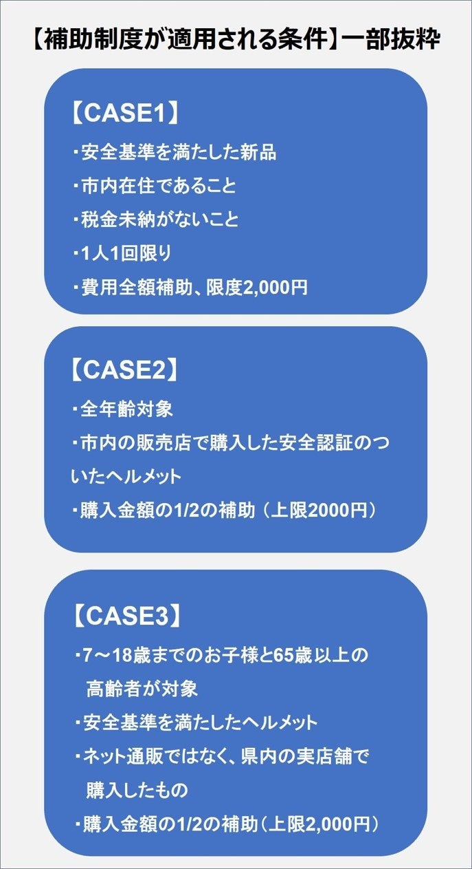 なお、補助が受けられる条件についても調査すると「安全基準(※2)を満たした新品購入」、「学生限定」、「自転車保険加入者に限る」などの回答が多く、自転車用ヘルメット着用義務化が始まって1年が経過した2024年4月1日から補助をスタートする自治体も見受けられました。補助の手法に関してはクーポンの発行、補助金の設定、割引対応など、地域によって異なる方法で配布されていることもわかりました。