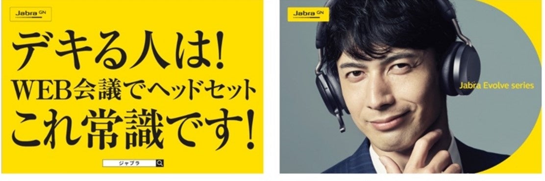 このように、ハイブリットワークにおいて従業員が十分な実力を発揮し成果を残すためには、ヘッドセットやWEBカメラ、スピーカーフォンなどの高性能なツールのサポートが必要であることがわかります。Jabraは、長年ビジネスシーンにおける様々なニーズに対応してきたオーディオメーカーとして、全国的にハイブリッドワークが増えてきたこのタイミングでビジネスシーンの通話におけるヘッドセットの重要性を訴求するべく、今回初となる全国的な広告展開を実施します。ビジュアルでは、ブランドカラーを全面的に使用し、Jabraブランドを訴求するとともに、WEB会議におけるJabraからの問題提起とアンサーの2種類を展開することでWEB会議におけるヘッドセットの重要性を伝えます。