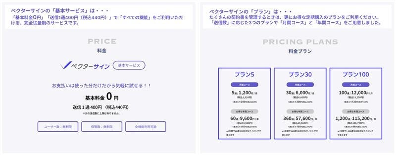 電子契約サービス「ベクターサイン」で基本料金0円の新料金プランを提供開始!