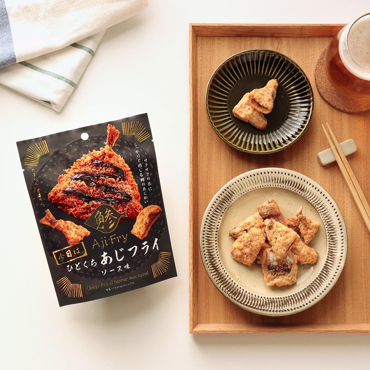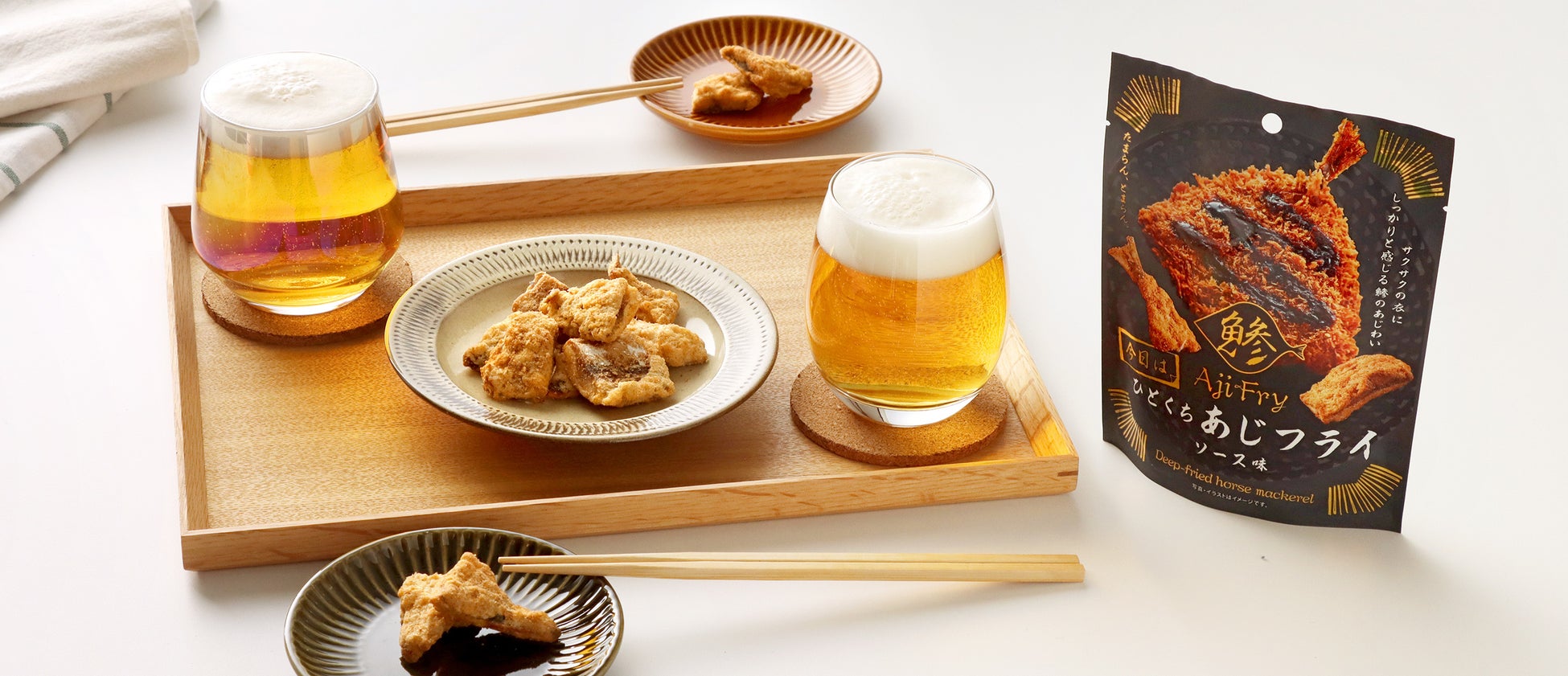 お惣菜をお菓子のように手軽に食べたい!そんな思いから開発した「天ぷらのお菓子シリーズ」は、「まるで天ぷらを食べているかのよう!」とご好評いただいております。今回、新たな惣菜菓子として、あじフライをそのままバキュームフライ製法で揚げた、おやつ感覚で食べられる「ひとくちあじフライ」を発売いたします。