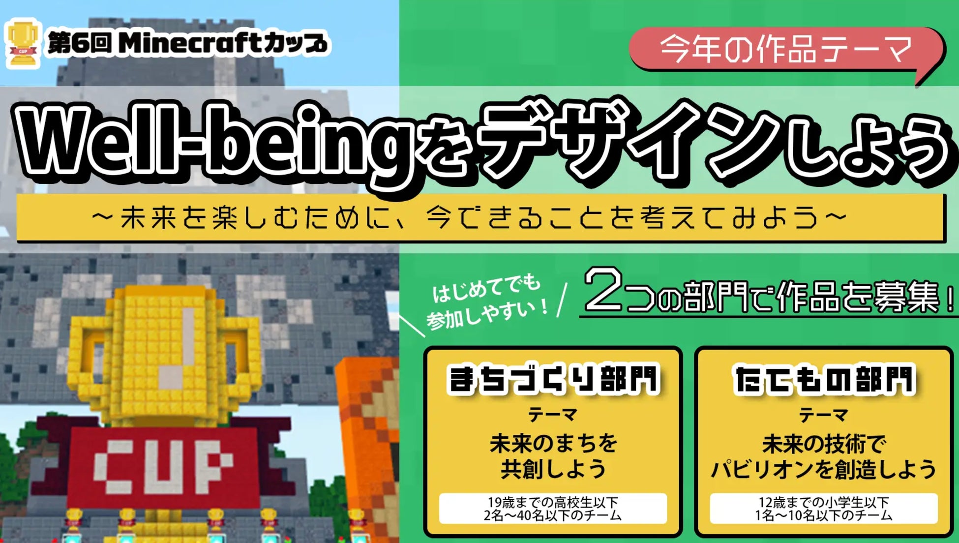 第6回Minecraft カップでは「17のSDGs目標が達成された後の未来」を描く人材を育てることを目的に「Well-being をデザインしよう」を大きなテーマとして扱います。