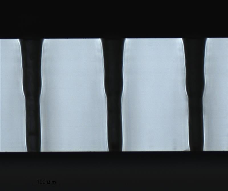 小孔径・狭ピッチTGVへの対応 エッチング加工面に傷が残りにくい |