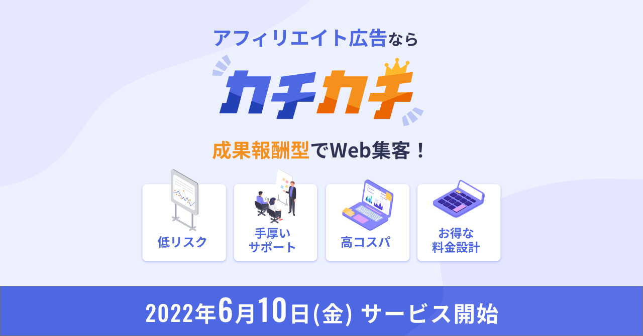 株式会社ジーン(本社:東京、代表取締役社長:林田洋明、以下:ジーン)は、2022年6月10日に、アフィリエイトサービス”カチカチ”をローンチいたしました。
