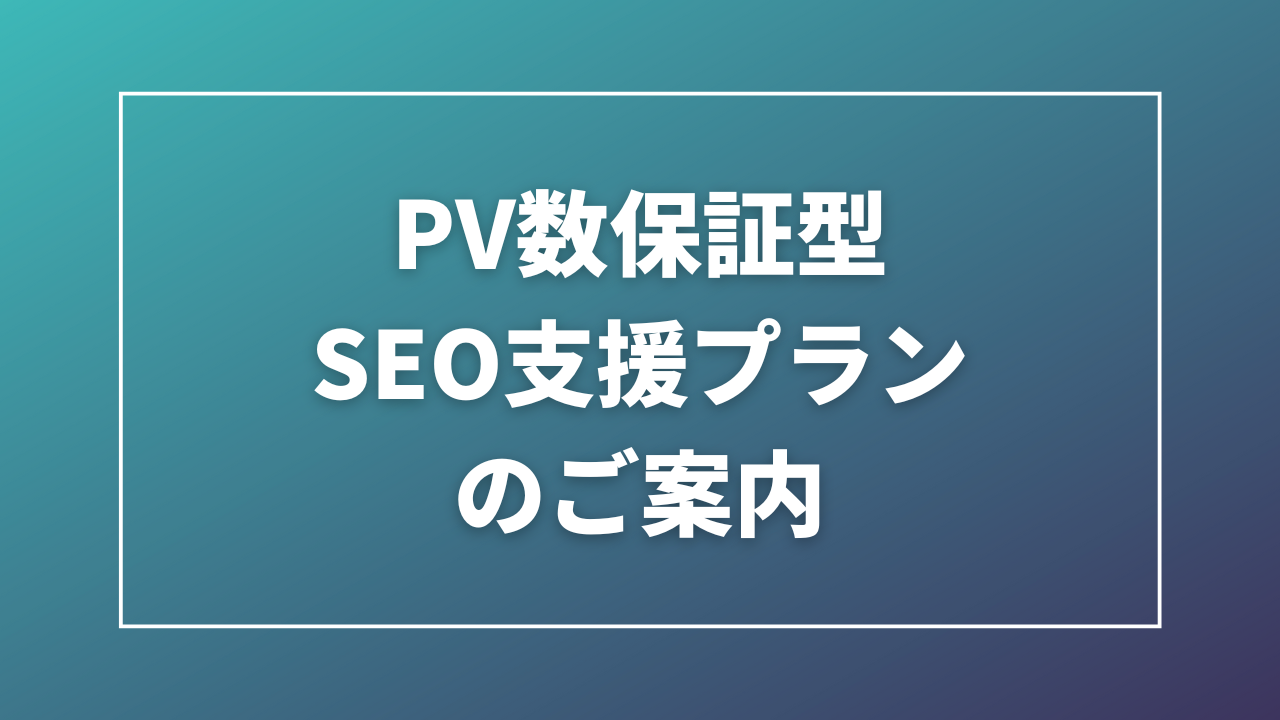 ※こちらのPV数保証型SEO支援プランはPV数の上昇が達成できないことがある場合を事前にご了承ください。