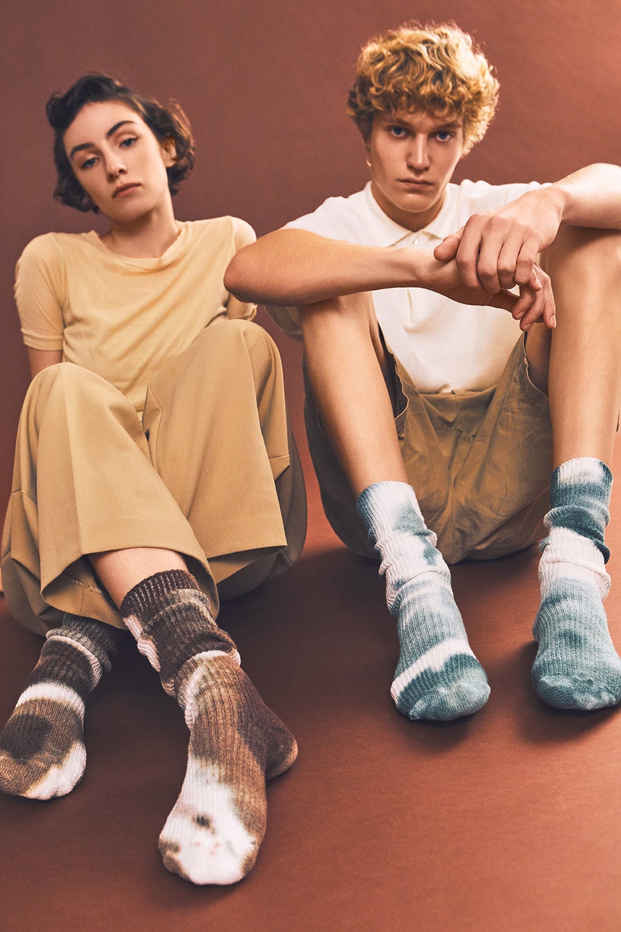 さらに春夏にはタイダイ柄の「Crispy tie-dye」が仲間入り。ストリートウェアやカジュアルファッションシーンで再注目されているタイダイ柄は1970年代のレトロなムードを演出。YUQRIらしい色合いと素材にこだわったタイダイ柄ソックスで春夏の足元を彩ります。