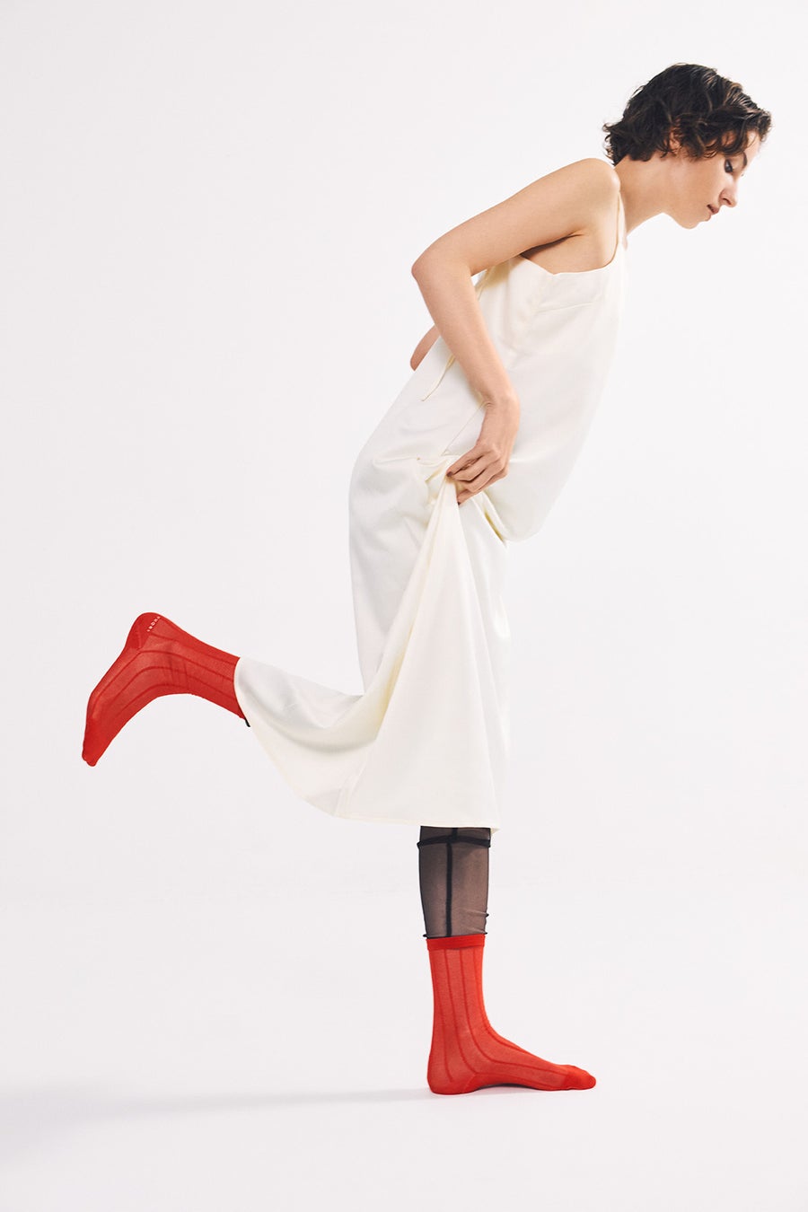 「Silky」は、特別な編み地仕様を採用することで、非常に高い伸縮性を実現。ワンサイズで22.0cmから27.0cmまで対応し、どなたでも快適にご着用いただけます。締め付け感のない柔らかなフィット感と、美しい発色が魅力のシンプルデザインは、春夏の軽やかなスタイリングにぴったりです。