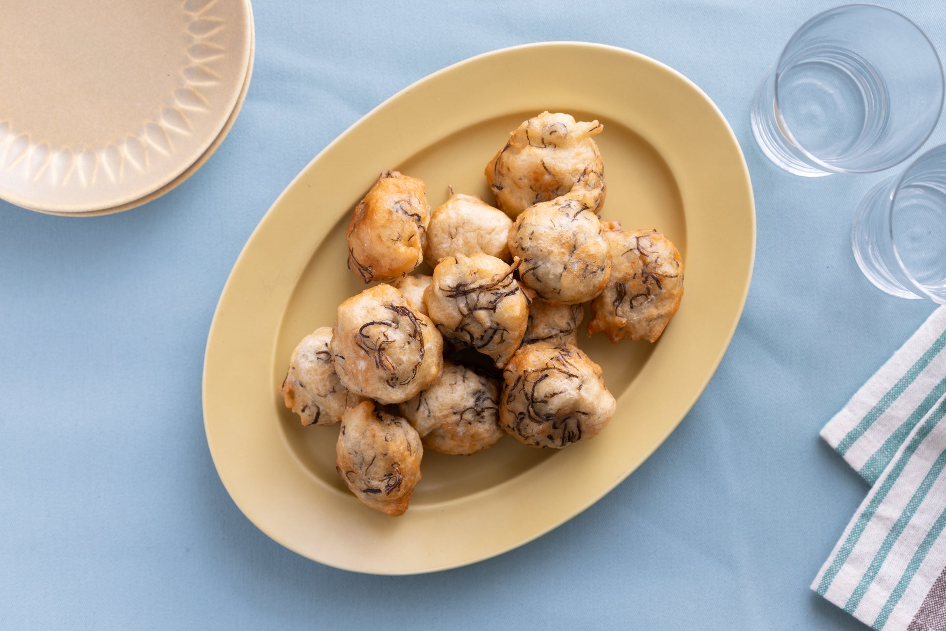生地に有機豆乳無調整を使い、もずくを入れてもちもちに仕上げたゼッポリーニです。