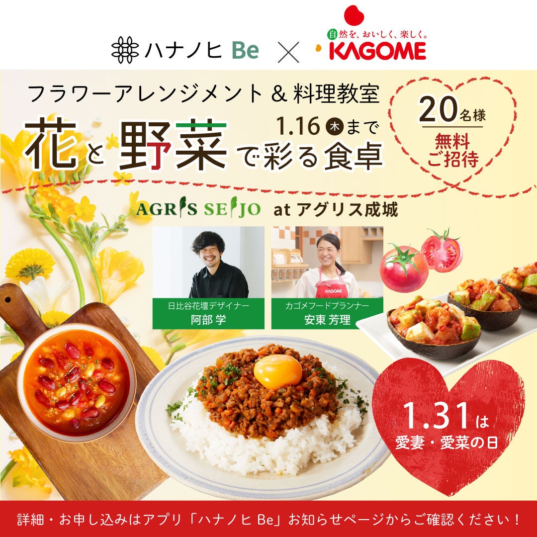 【1月31日は愛菜・愛妻の日】日比谷花壇×カゴメ トップフローリスト&フードプランナーから学べる『花と野菜で彩る食卓!フラワーアレンジメント&料理教室』を世田谷・アグリス成城で1月26日(日)に開催。