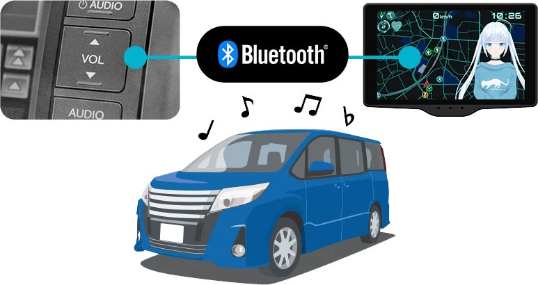 Bluetooth®搭載により、カーオーディオやスピーカーにワイヤレスで接続し、音声を出力することが可能です。