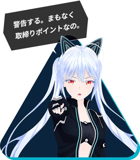 ユピテルオリジナルキャラクター「霧島レイ」が、安全運転指導少女としてスピードの出すぎや、運転に気をつける場所をお知らせします。