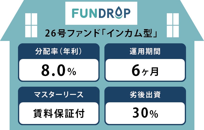 FUNDROP 26号ファンドは、利回り(年利)8%、賃料保証付きにて運用