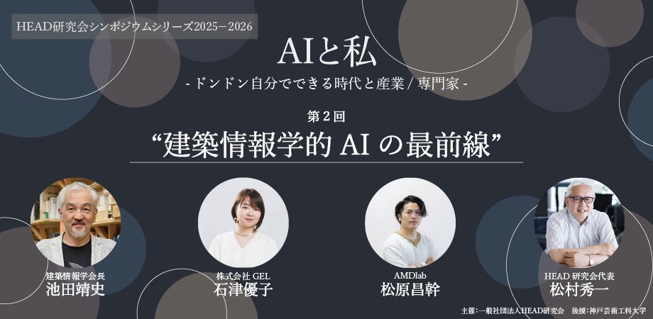 建築業界のDXを推進する株式会社AMDlab(代表取締役CEO:藤井章弘、一級建築士事務所)は、取締役CTOの松原昌幹が、2025年10月27日(月)に一般社団法人HEAD研究会が主催するシンポジウムシリーズ「AIと私 ― ドンドン自分でできる時代と産業/専門家」第2回に登壇することをお知らせします。