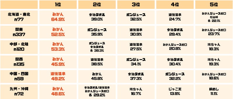 「愛媛県=みかん」やはり強し!1位「みかん」&TOP5のうち3つがみかん関連!