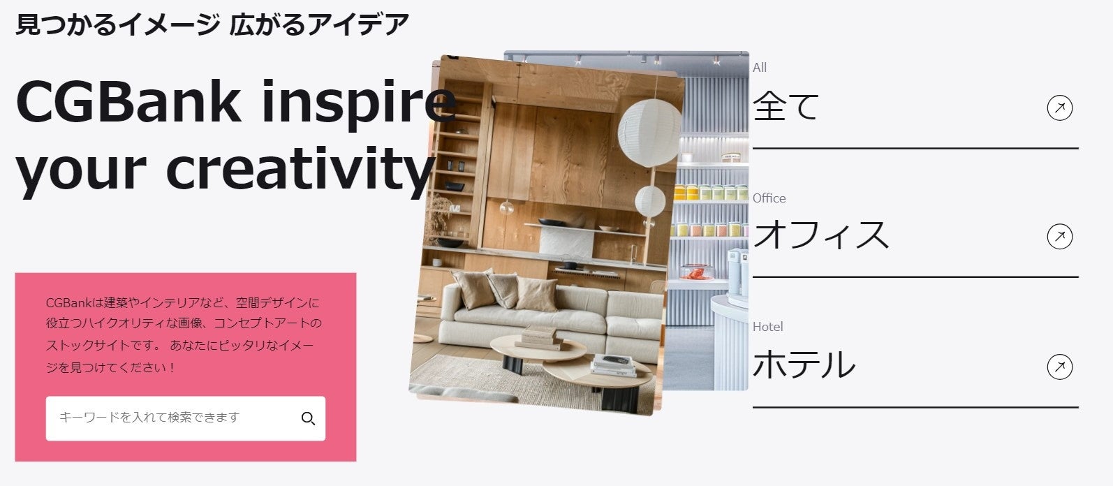 『CGBank』は、デザイナー様や設計者様向けに誕生した、空間に特化した画像ストックサイトです。