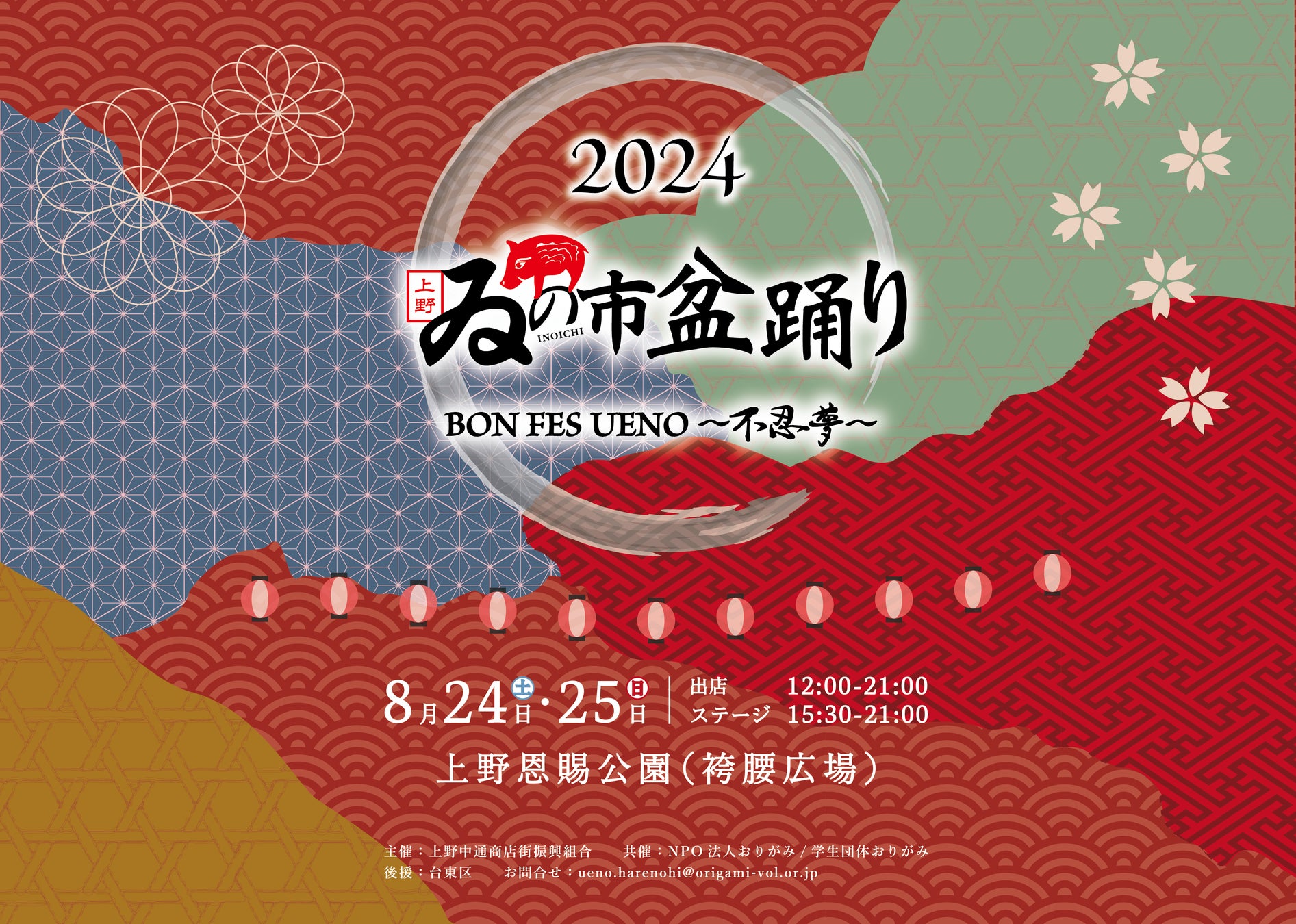 東京都「未来を創る商店街支援事業」の一環として「ゐの市盆踊り BON FES UENO〜不忍夢〜」を8月24日、25日(土日)に上野恩賜公園袴腰広場にて開催します。