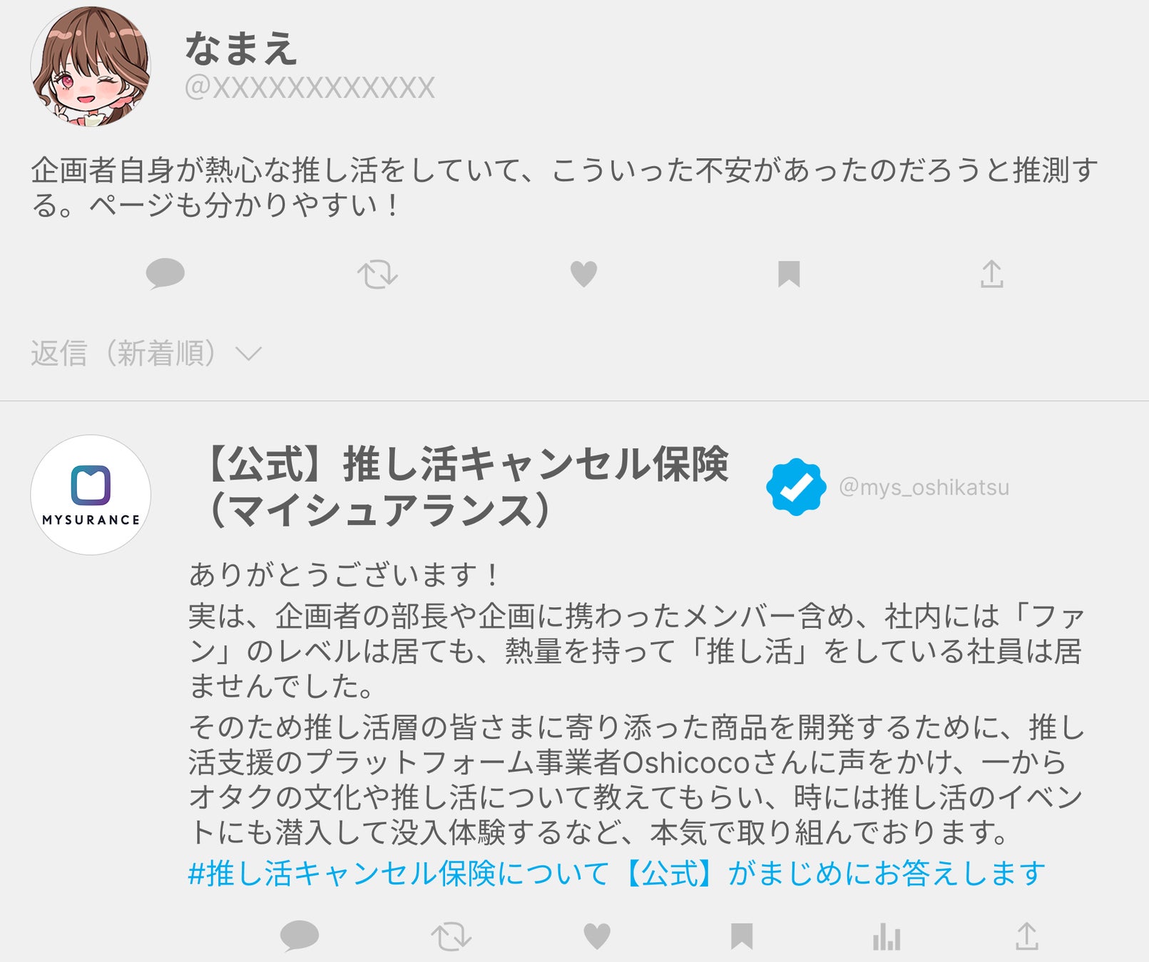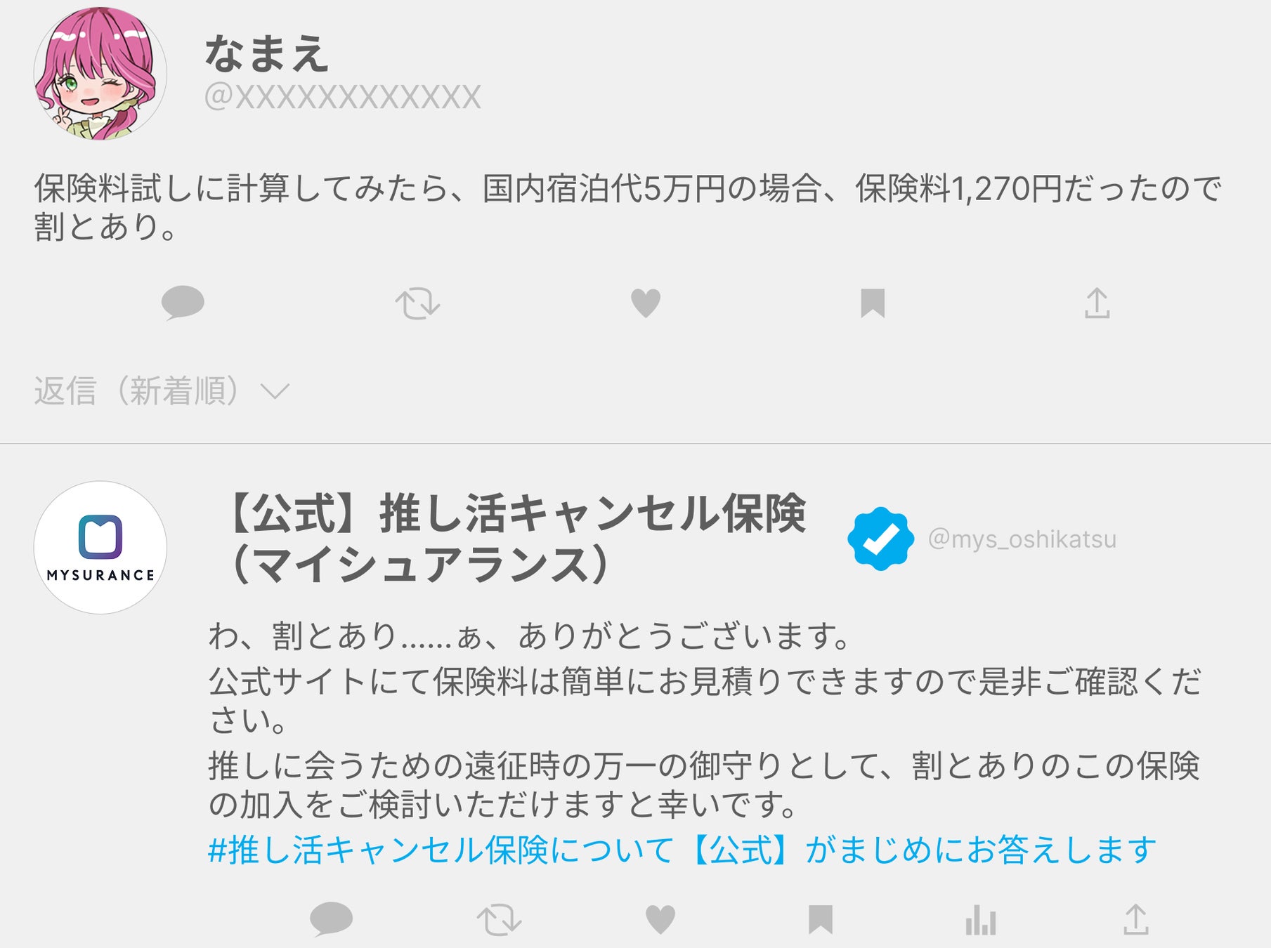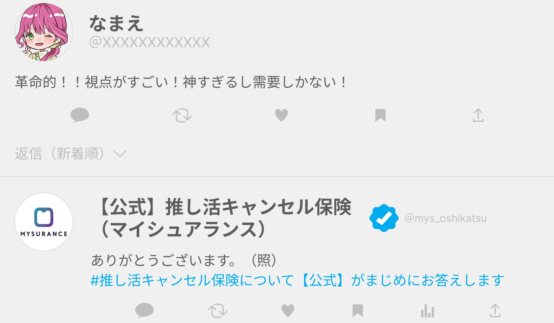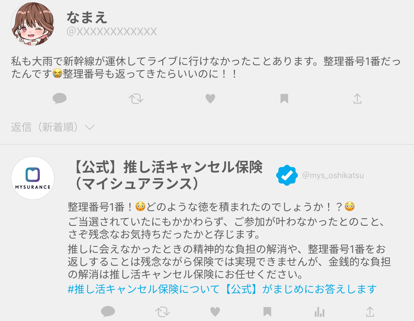特にX(旧:Twitter)では、「推し活キャンセル保険」に関連した投稿が、数日で累計1,500万インプレッション(表示回数)を超えるなど、想像を上回る反響にMysurance一同、大変嬉しく思っております。(と、同時にバズから1週間経過し、どなたも呟かなくなった現状を見て虚無感も感じております。)