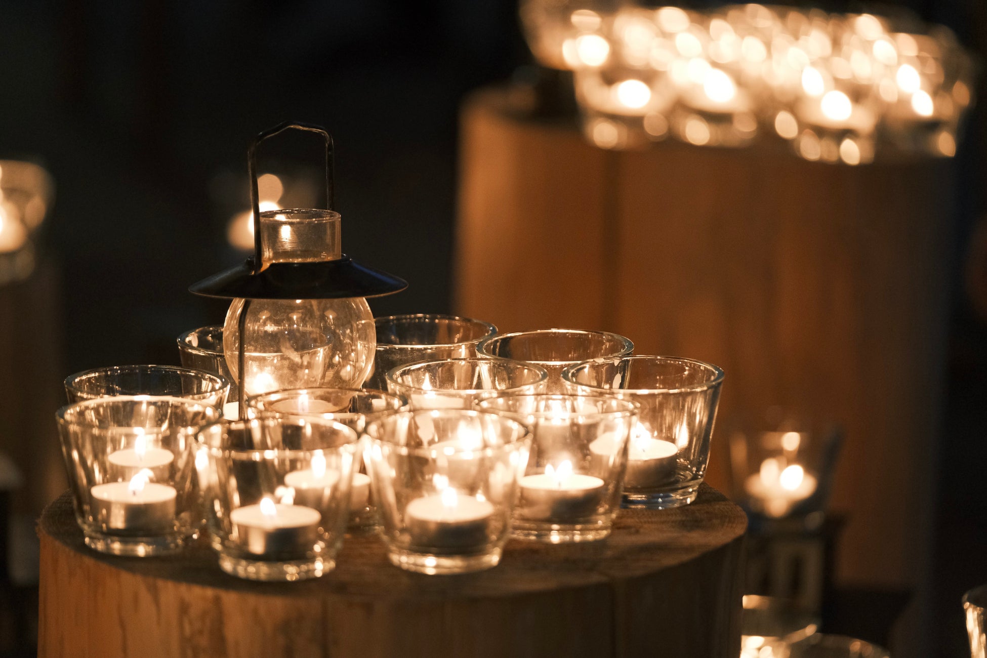 キャンドルの灯りで、レストランのテラスを優しく照らしてください。揺らぐたくさんのキャンドルがクリスマスムードを演出します。