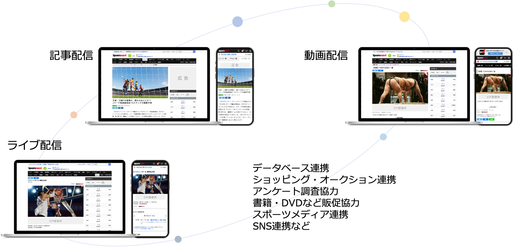 スポーツナビは、テキストによる記事、VOD動画、ライブ配信、さらにスポーツナビのオリジナルコンテンツ作成などのコラボレーション企画など、多岐に渡るコンテンツ形式でスポーツ団体の情報発信をお手伝いいたします。