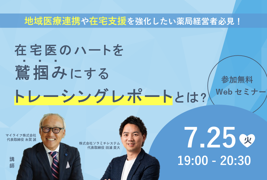 【ソラミチシステム:無料オンラインセミナー7月25日開催】地域医療連携や在宅支援を強化したい薬局経営者必見!在宅医のハートを鷲掴みにするトレーシングレポートとは?
