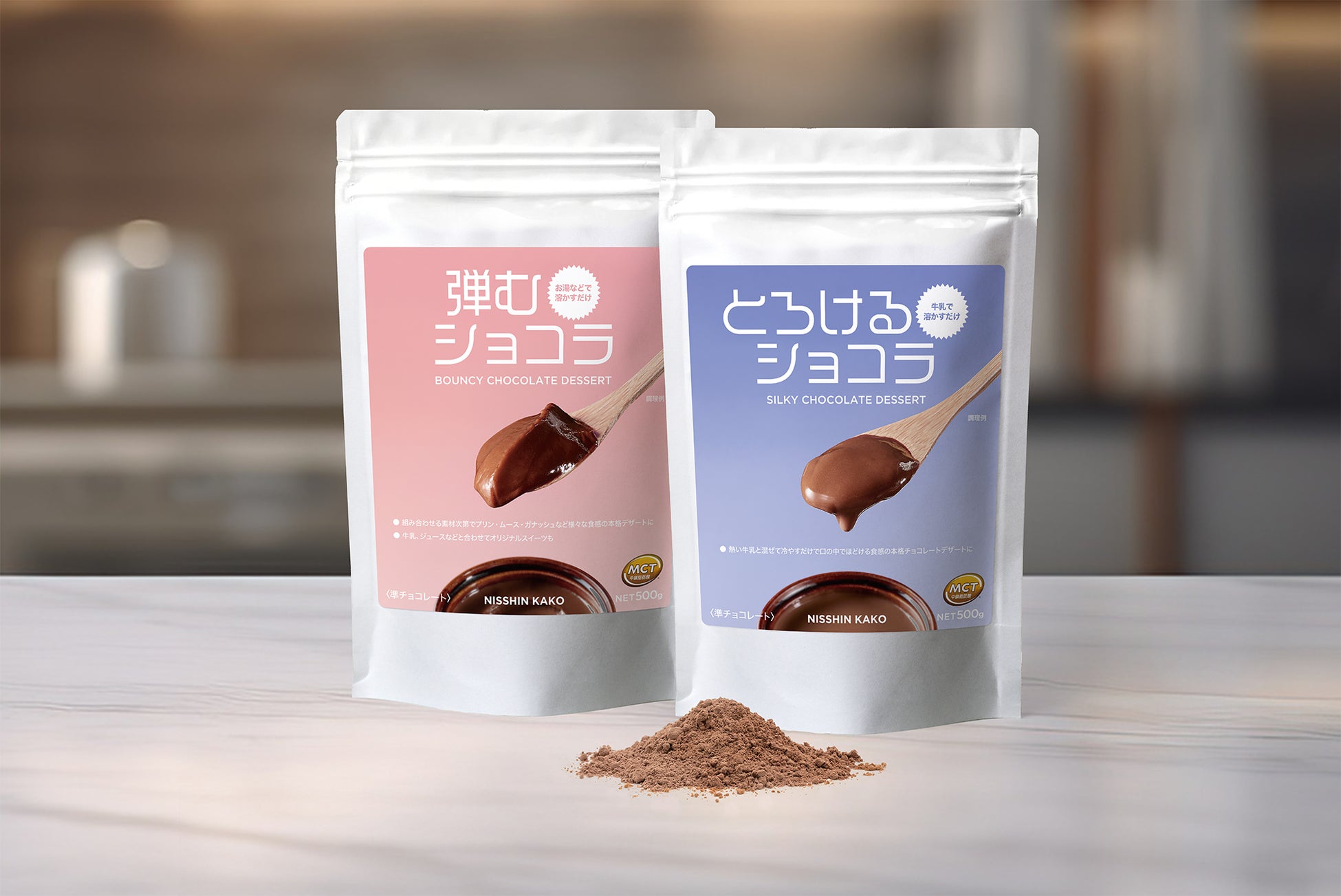 新提案!業務効率とメニューの幅を広げる2種類のチョコレート粉末、『弾むショコラ』『とろけるショコラ』。~誰でも簡単にプロのデザートを~
