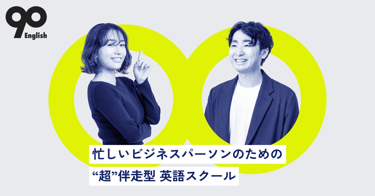 『90 English』は忙しいビジネスパーソンのための“超”伴走型の英語コーチングスクールです。 一般的な短期集中型の英語学習サービスとは一線を画し、「人は、一人では弱い。」という前提から学習体験を再設計。後天的に英語を身につけた専属日本人コーチの伴走、習慣化を追求したユーザー体験を通じて、英語学習に燃え尽きず効率的に学習できるメソッドが強みです。
