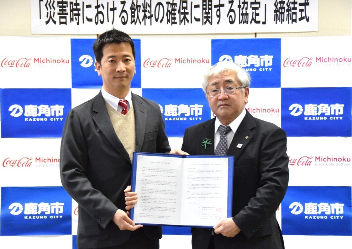 このたび、みちのくコカ・コーラボトリング株式会社(本社: 岩手県盛岡市、代表取締役社長: 谷村 広和、以下「当社」)は、秋田県鹿角市(市長: 関 厚)との間で、「災害時における飲料の確保に関する協定」を締結することとし、12月16日(木)に締結式を開催いたしました。