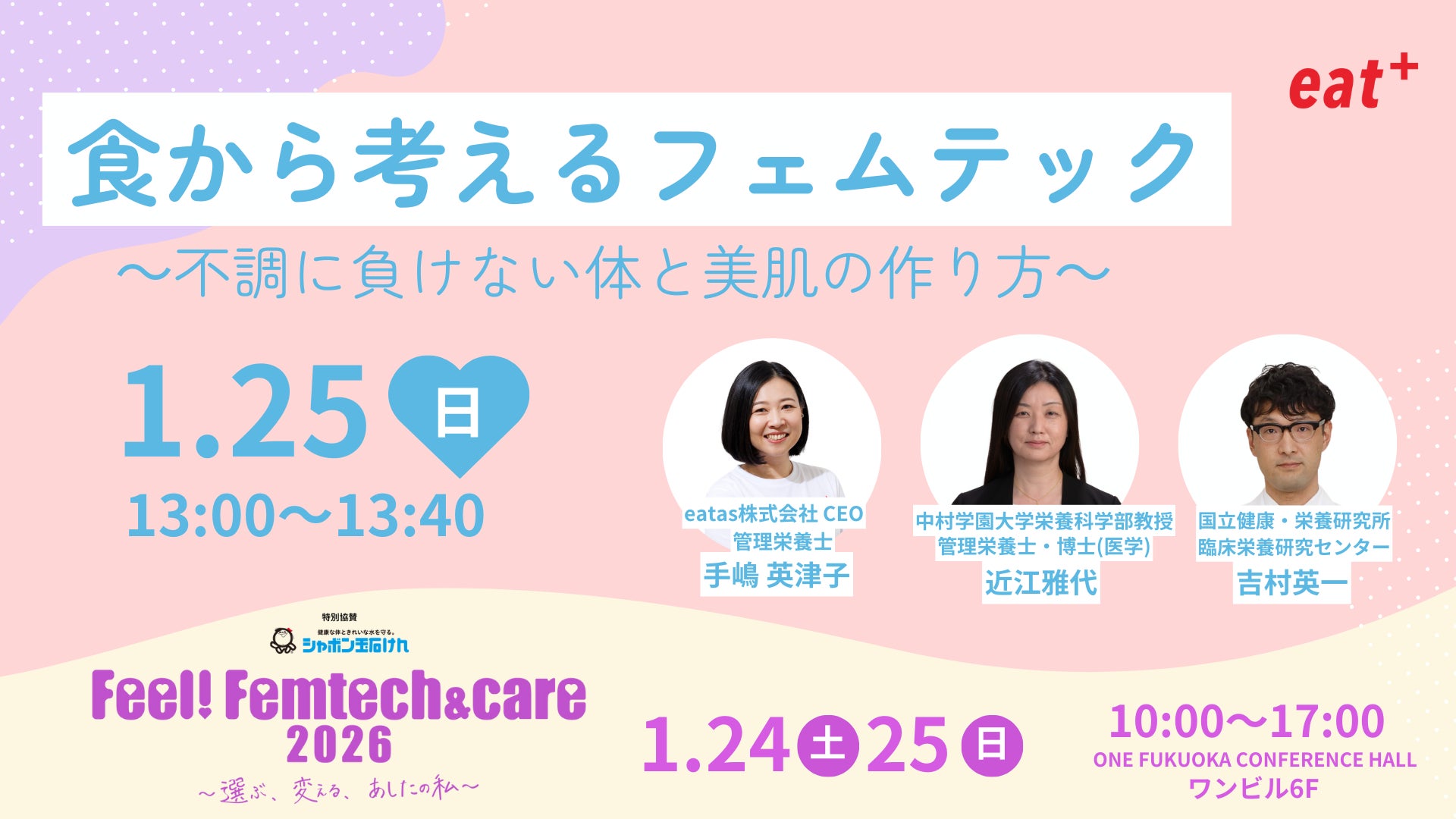 1月25日(日)にONE FUKUOKA CONFERENCE HALLで開催される「Feel!Femtech & care2026 ~選ぶ、変える、あしたの私~」でCEO手嶋が登壇することをお知らせします。