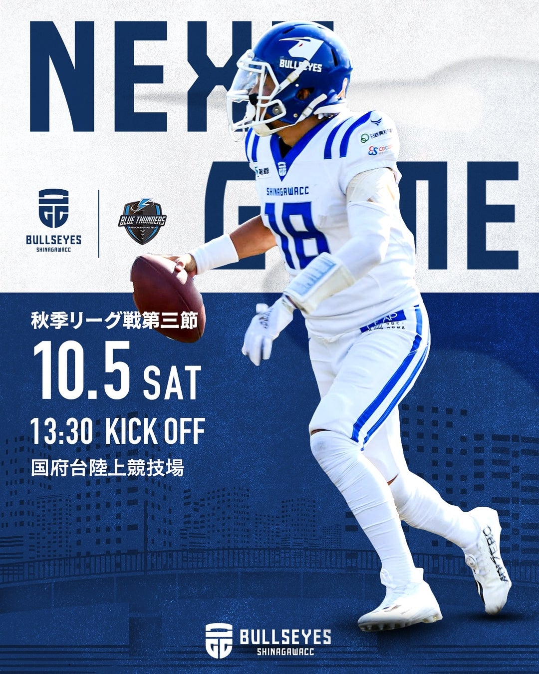 第3節:10月5日(土) 13時30分〜 対 ブルーサンダース (会場:国府台陸上競技場)