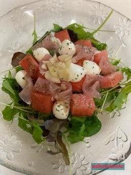 【すいかのサラダ】食材とドレッシングを混ぜ合わせるだけで完成!