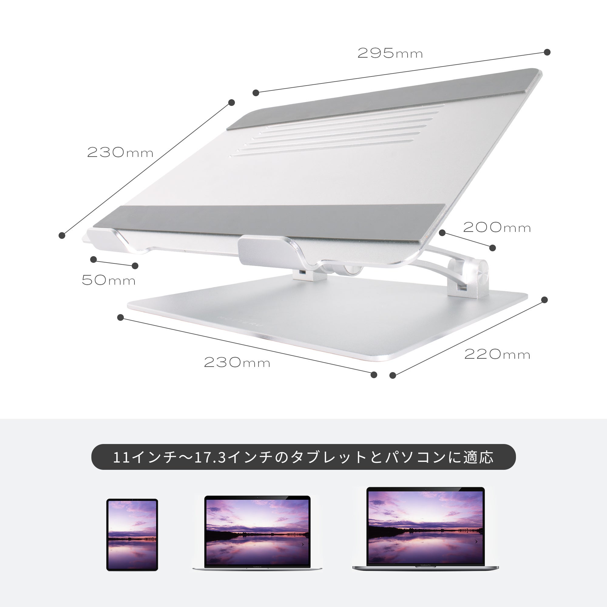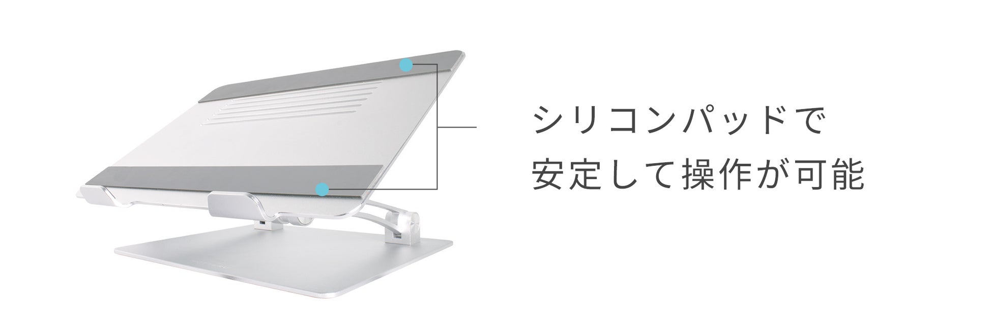 表面には滑り止めのシリコンパッドが付いており、大きめのパソコンはもちろん、iPad Proやタブレット等、どんなサイズのタブレットやパソコンでも滑りにくく安定して使用することができます。ペンタブレットの使用時にも安定した操作が可能です。