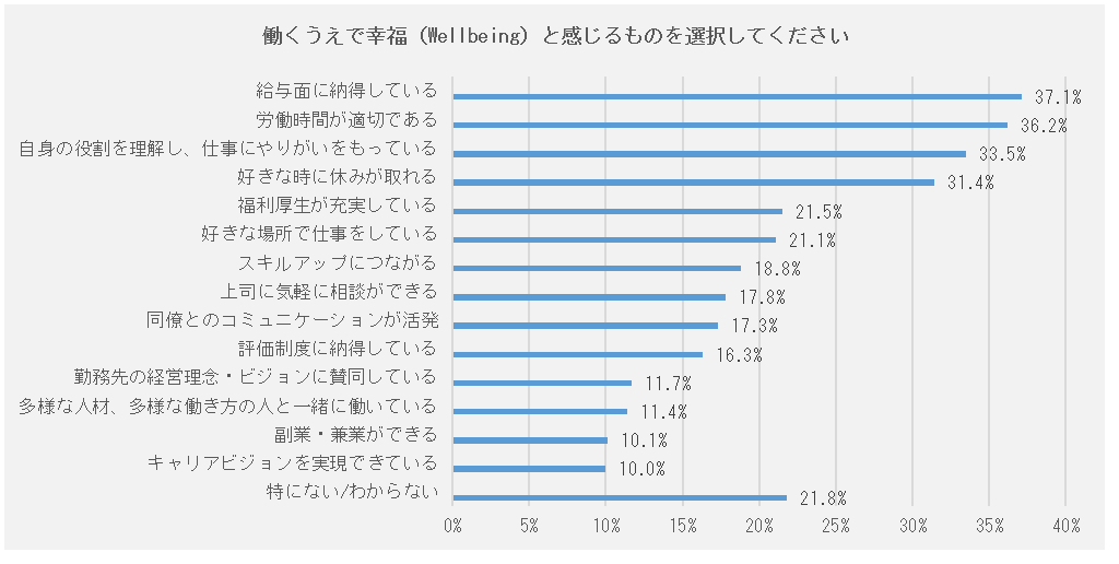 Q9.働くうえで幸福(Wellbeing)と感じるものを選択してください。