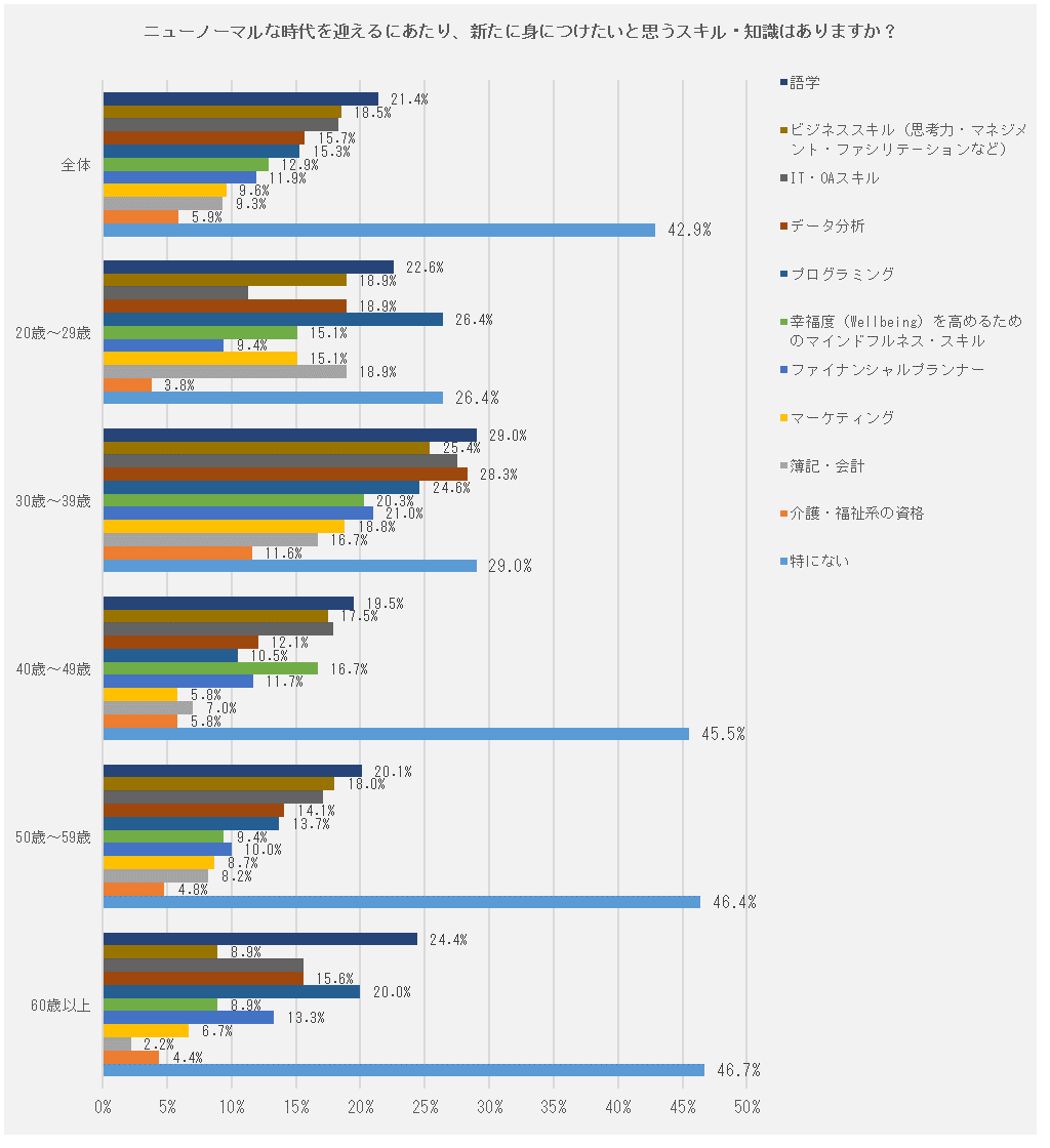 Q10.ニューノーマルな時代を迎えるにあたり、新たに身につけたいと思うスキル・知識はありますか?