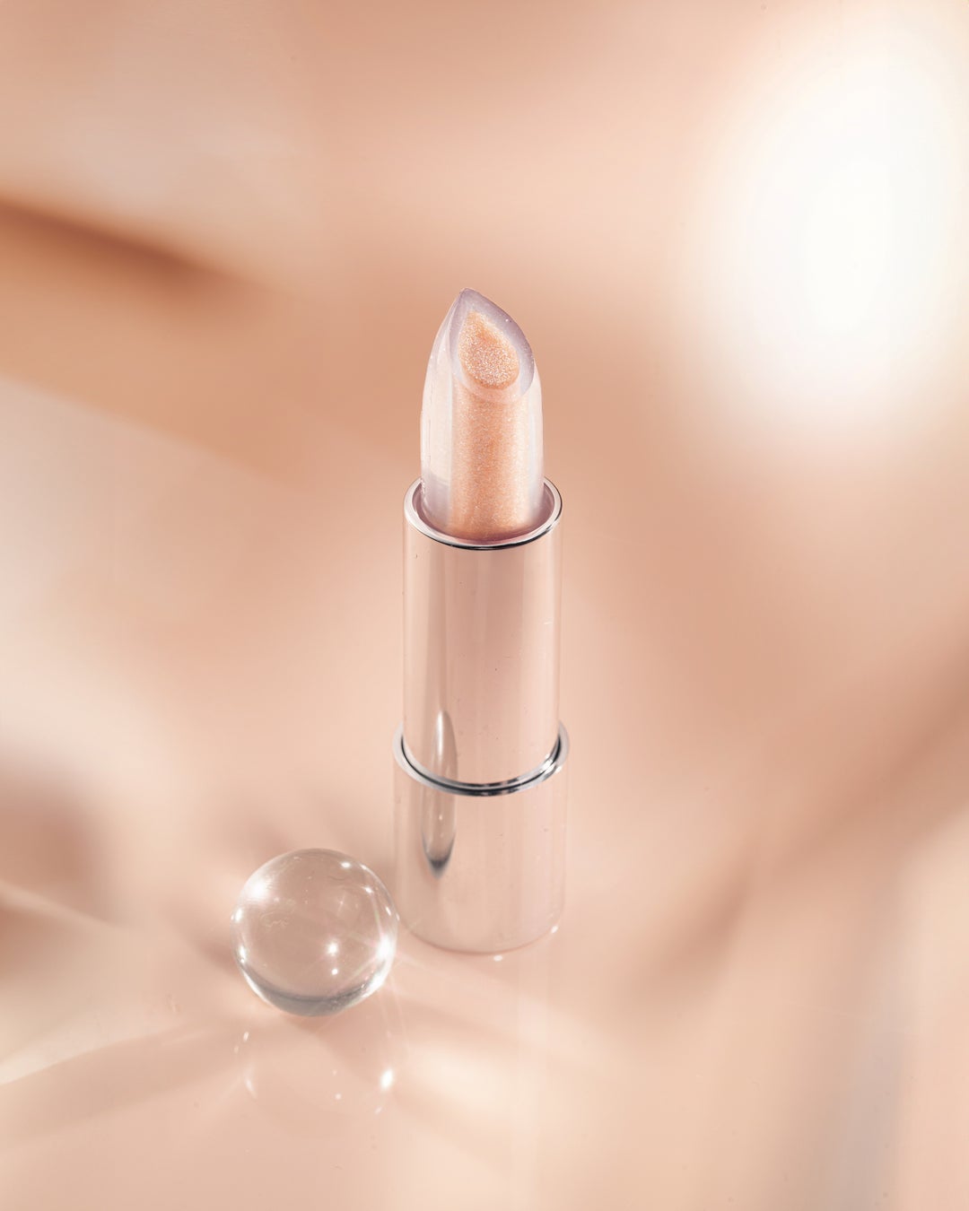 内側のカラーのコア部分を美容液の外側の層で包み込むことは、2つの利点があります。まず⼀つは、外側の層に⾊がついていないことで、鏡をみなくても⾊がはみ出すことを気にせず、唇全体をしっかりとカバーできます。ティアドロップ型に拘ったのも、切れやすい唇の端こそ、より美容液をしっかりと塗る必要があるからです。もう⼀つの理由は、外側に濃度の⾼い美容成分をしっかりと持ってくることで、⾒た⽬も美しく、より多くの美容液を配合することができます。