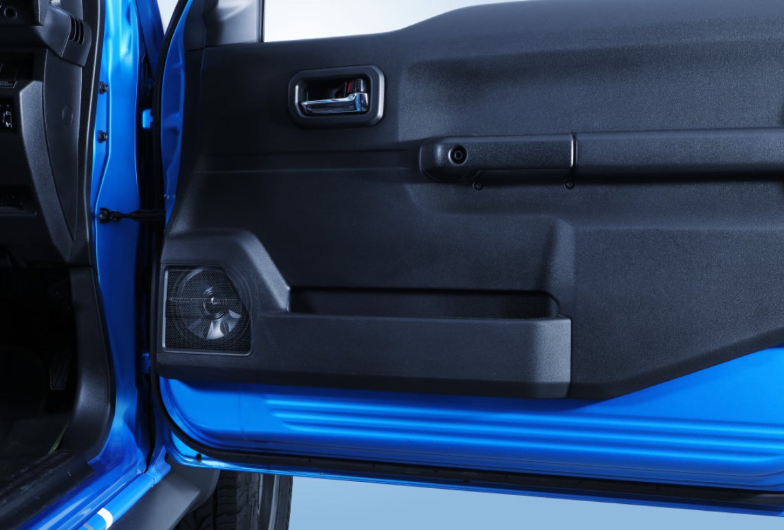 16.5cmの専用ドアウーファー(装着用スペーサー付属)は、ジムニーの車室内スペースを犠牲にすることなく重低音再生を実現。ルーフスピーカーによるクリアな中高域と合わせて、ジムニーの車室内が楽しく迫力のあるサウンド空間に生まれ変わります。