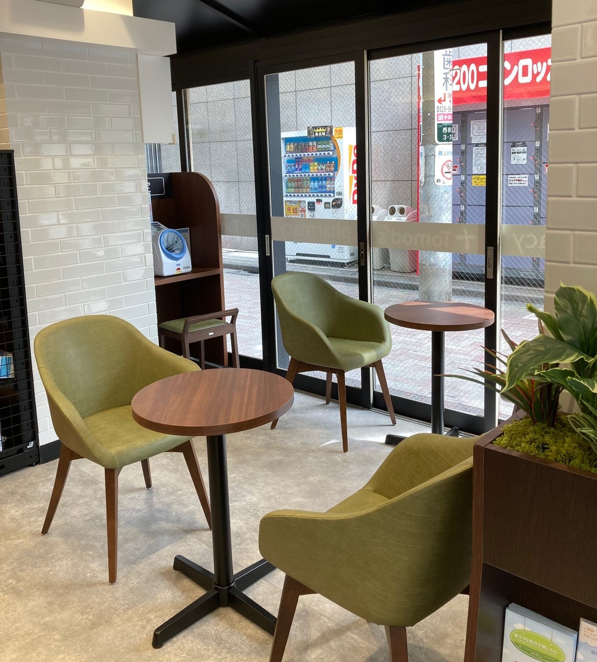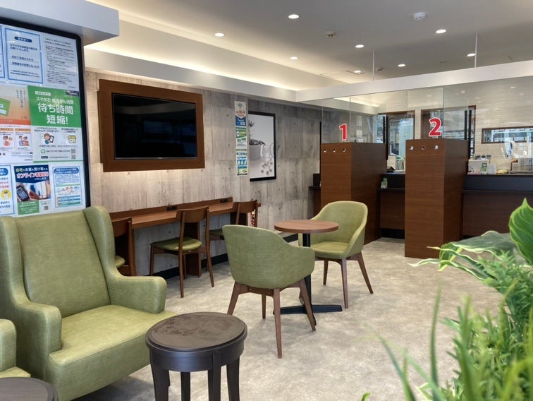 同店は、これまで小さな路地に面した小ぶりの調剤薬局でしたが、駅前の路面にまでエリアを広げたため、駅からの視認性が高く、広々とした待合スペースで落ち着いた雰囲気の中でゆったりとお過ごしいただけるようになりました。