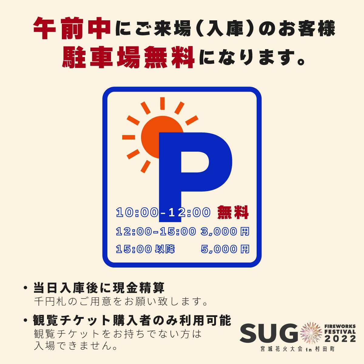 ※会場周辺での無料観覧エリアや無料駐車場はご用意しておりません。ご来場の際は必ず観覧チケットをご購入してご来場ください。