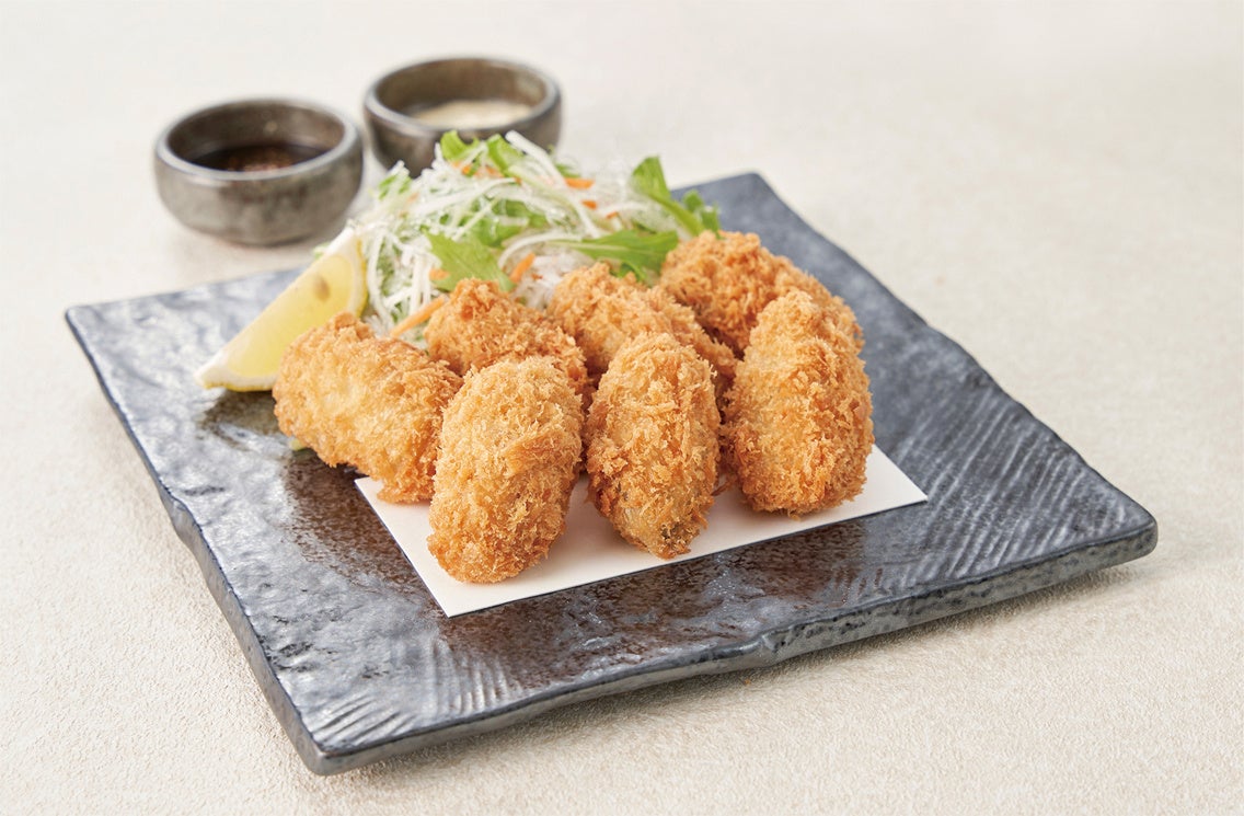 サクッとジューシーな牡蠣フライを、中濃ソースとタルタルソース二種類のソースでお召し上がりください。