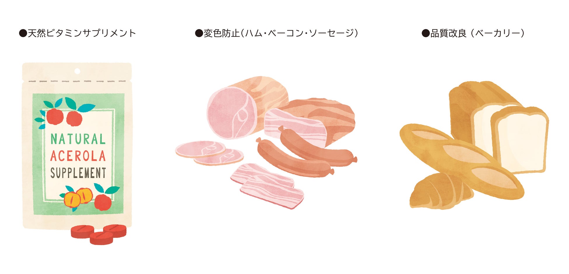 このようなトレンドを受け、天然ビタミンCを多く含むアセロラパウダーを、食品の品質維持などに使用するニーズが顕在化しています。