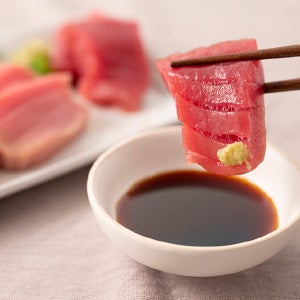 市場に出回るマグロの約80%は冷凍マグロ。残りの20%が生マグロと言われています。生マグロとは、「加熱していない」ではなく、「一度も凍らせていない」マグロのこと。冷凍マグロは、冷凍される際に細胞が破壊されてしまうのに対して、生マグロは水分やうま味成分が外に出ないため、しっとりとした食感と濃厚なうま味が味わえます。「生」本マグロは鮮度を保つ難しさから、希少とされ非常に高値で取引されています。