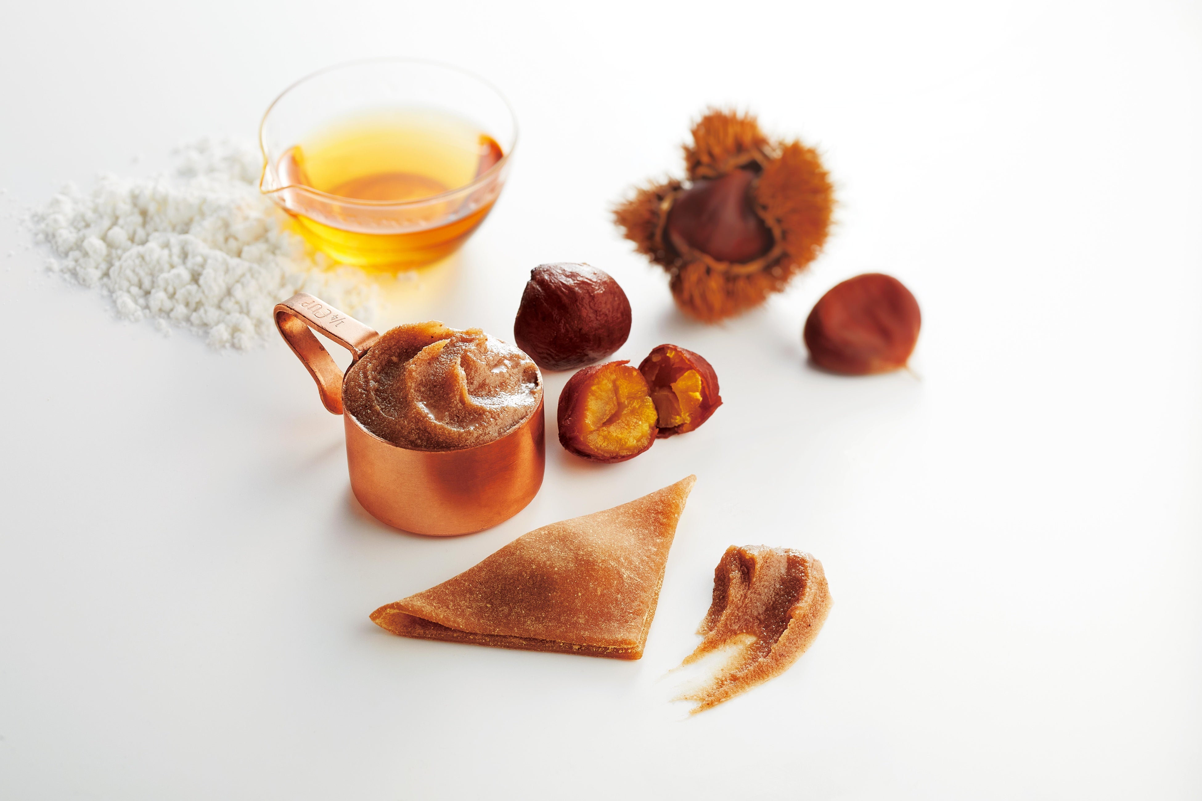 - 芳醇なモンブランクリームがまろやかにとろける…「生八つ橋もんぶらん」