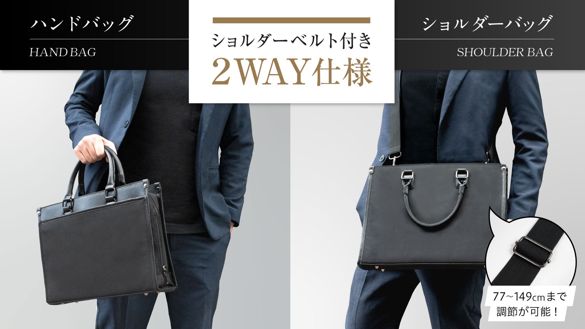 就職後の通勤や外回り営業にも対応できる収納力と耐久性を備え、就活から社会人生活まで長く使いやすいビジネスバッグとして設計されています。